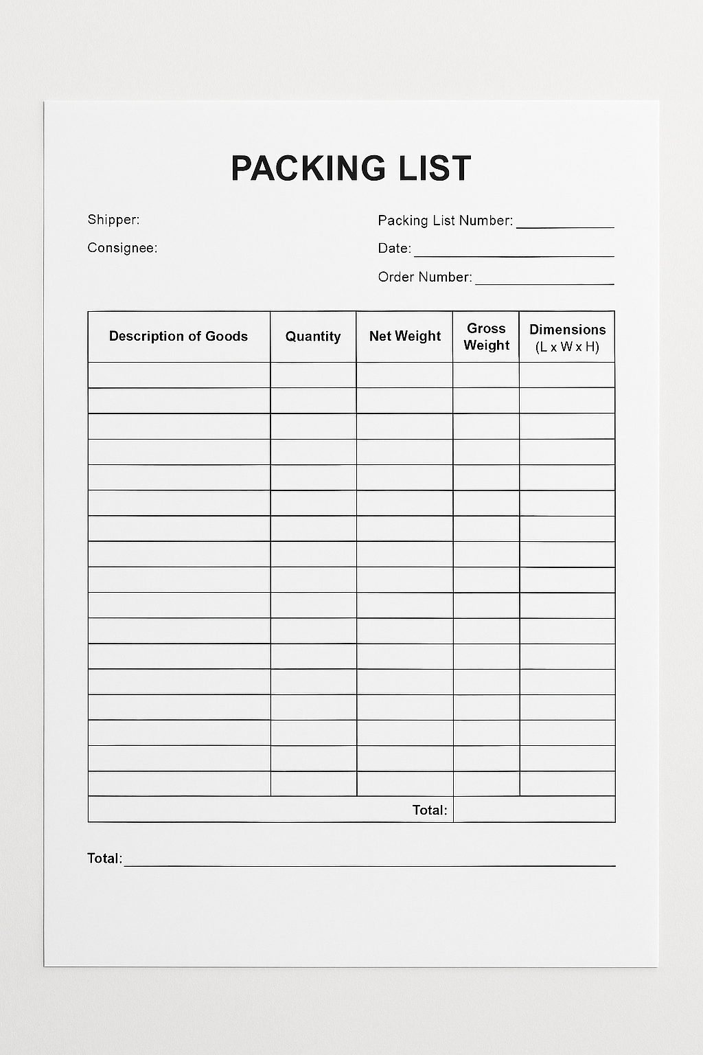 پکینگ لیست یک سند رسمی است که بهطور دقیق جزئیات محموله ارسالی را مشخص میکند. این جزئیات شامل موارد زیر میشود:
